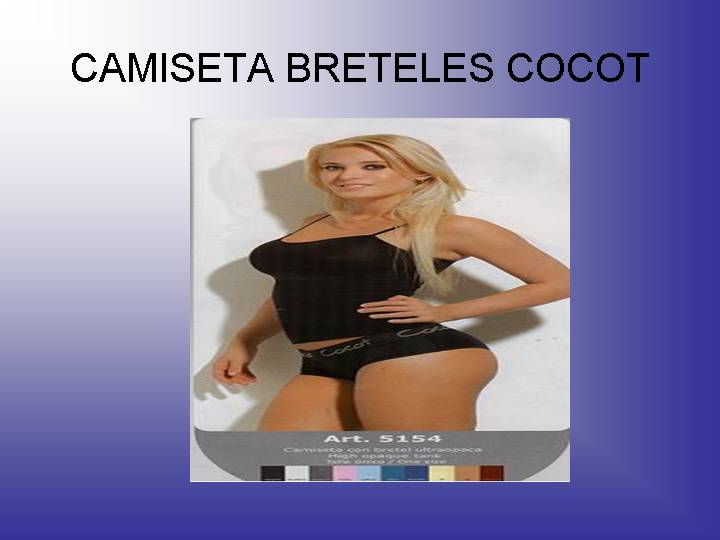 Remeras y camisetas de cocot camiseta con bretel ultraopaca (precios expresados en pesos argentinos) talle único colores marino-chocolate ventas por mayor y menor con la compra de 2 art. O mas 10% de descuento envíos por correo argentino o retiros en capital federal. Ofertas disponibles hasta agotar stock buscamos revendedores para nuestro equipo de venta.
