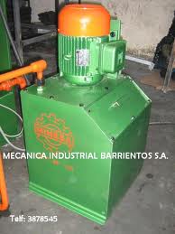 Central hidráulica se diseñan de acuerdo a cada necesidad, con productos de calidad y estándar en el mercado, con el objeto de mantener la continuidad operativa de la maquina. -bomba de piñon y piston (2 en 1) -presión de 200 bar -válvulas de retención -válvula reguladora de presión -válvulas direccionales manual o selenoide -presostátos -válvula reguladora de caudal -coladores de succión -motor eléctrico -manómetro de presión con glicerina -estanque de aceite -acoples rápidos para conexiones de las mangueras hidráulicas mecánica industrial barrientos s. A. Av. Constelación 2780 urb. Ganímedes - san juan de lurigancho Lima - Perú nextel: 428*4190 teléfono: 387-8545 cel: 993223541.