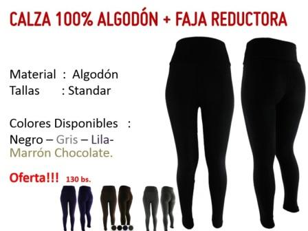 No esperes más, no lo pienses más, pide una ya. ¿quieres verte más esbelta y levantar la cola?, ¿estas aburrida que nada te quede bien? entonces aquí está la solución, calzas reductoras más faja con una altura que sobre pasa el ombligo, casi llegando al sector donde se encuentran los senos. Además, a diferencias con las otras calzas que se venden actualmente en el mercado es que están hechas de algodón, 100% algodón.