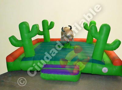 Toro mecánico totalmente acolchado: íntegramente cubierto con cuero legítimo. Medidas (ancho x alto x largo): 5m/2m/5.5m con escalera de ingreso inflable y pequeña baranda que rodea el colchón con cactus inflable en los cuatro extremos. Incluye turbina para colchón de bajo par de arranque, motor para toro mecánico de bajo consumo y panel de control. Excelente atracción para niños y adultos. Elaborado con materiales de primera calidad y con refuerzos estratégicos que aumentan su vida útil. Envíos a todo el mundo. Consultar formas de pago y modos de compra.