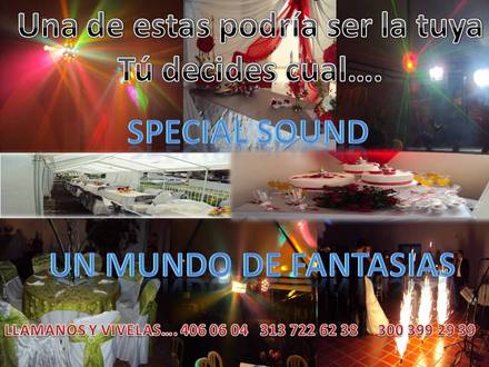 Special sound: nuestra empresa ofrece servicios de minitecas en medellin y sonidos profesionales para cualquier evento, conferencia o actividad que usted requiera, tenemos los preios mas economicos de la ciudad y lo mejor. Servicios garantizados. Tabien tenemos servicios de alquiler de carpas muy eleagntes ideales para espacios tanto abiertos como cerrados, tenemos karaokes con amplios repertorios musicales, alquilamos maquinas de humo, de burbujas y todo en general en organización de eventos. Visita nuestra página web y descubre a través de nuestro archivo fotográfico la amplia gama de servicios que tenemos para ti. Llámanos y compruébalo. Santiago velásquez 313 722 62 38 406 06 04.
