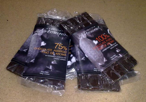 Chocolate artesanal está elaborado con cacao orgánico fino de aroma, cosecha cuyo origen proviene de mi propia finca. Cada barra contiene 100g y rinde entre 2 a 3 litros ya sea en leche o agua según el gusto de quien lo prepara. 100%: cacao puro, 4 dólares 75%: cacao amargo, 3 dólares telf: 069616642 - 042271049 *precios no incluiyen i. V. A. *entrega a domicilio para Guayaquil.